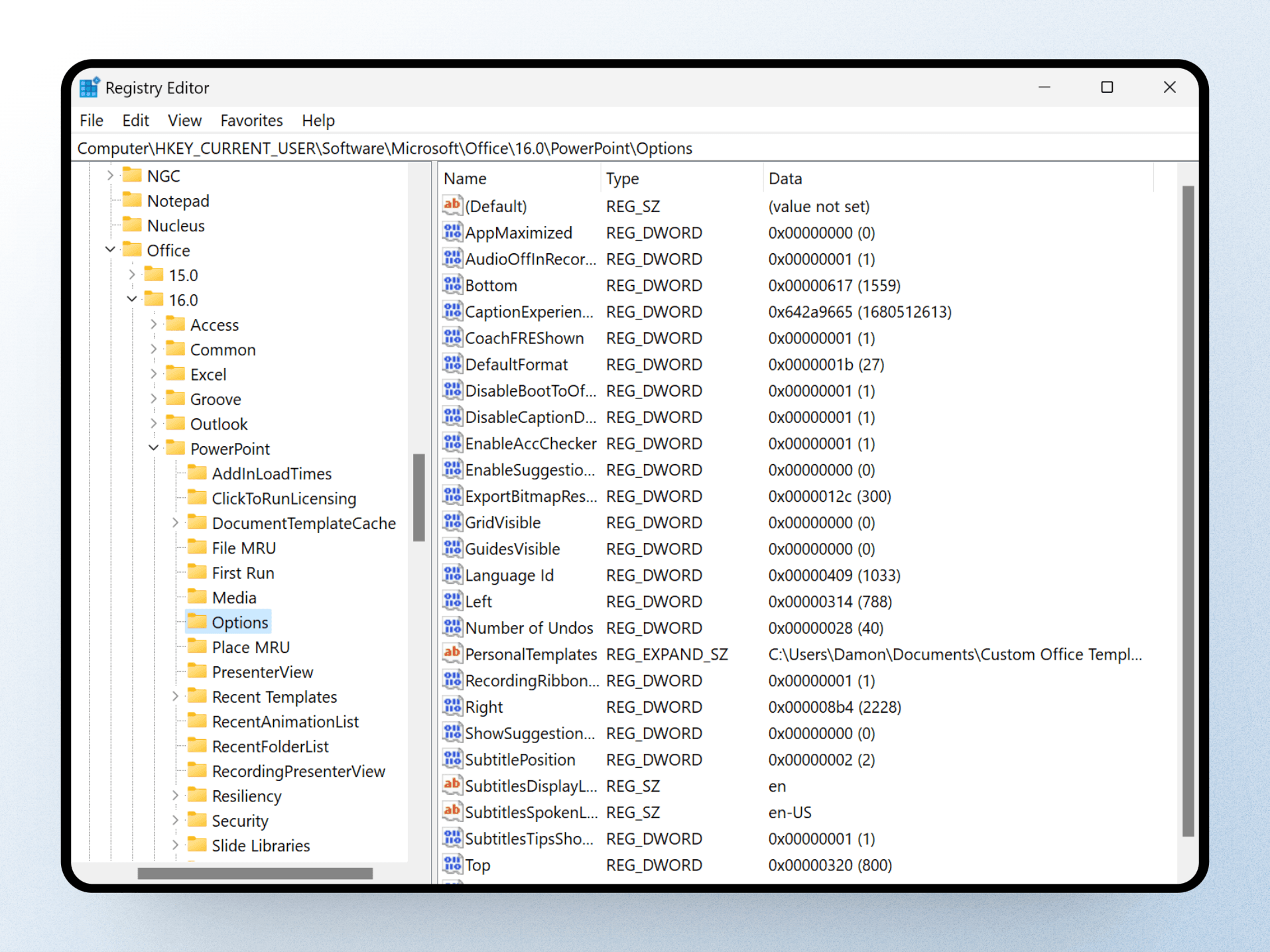 HKEY_CURRENT_USER\Software\Microsoft\Office\16.0\PowerPoint\Options