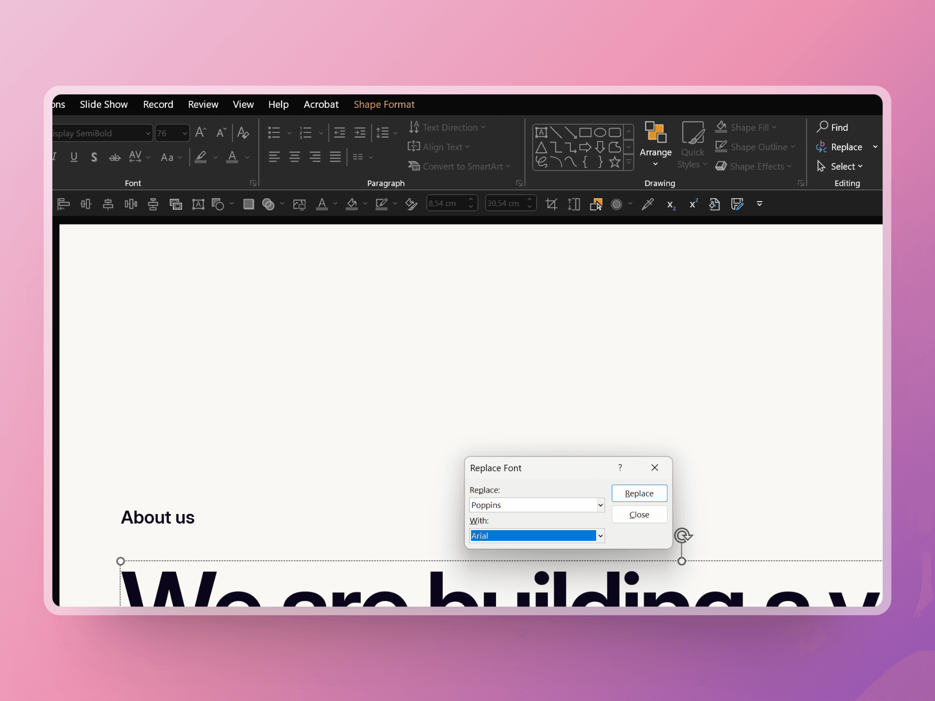 Let’s say you have a presentation with two fonts: Arial and Poppins. You only want to keep Arial, but Poppins won’t go away despite your efforts to replace it. Here’s a detailed workaround to fix this.